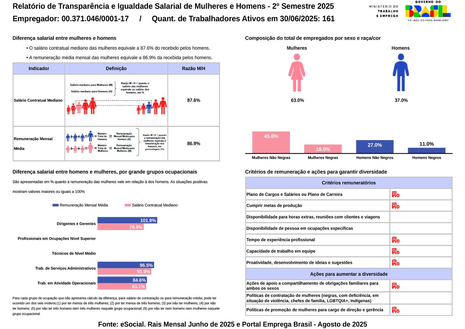 Relatório de Transparência e Igualdade Salarial de Mulheres e Homens - 2º Semestre 2025 - Matriz