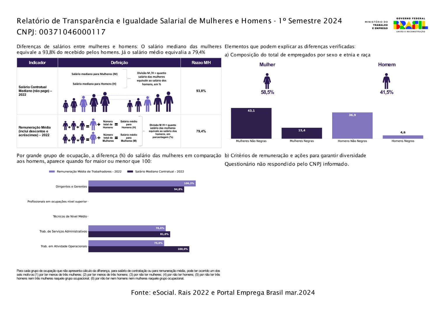 Relatório de Transparência e Igualdade Salarial de Mulheres e H omens - 1º Semestre 2024 - Matriz