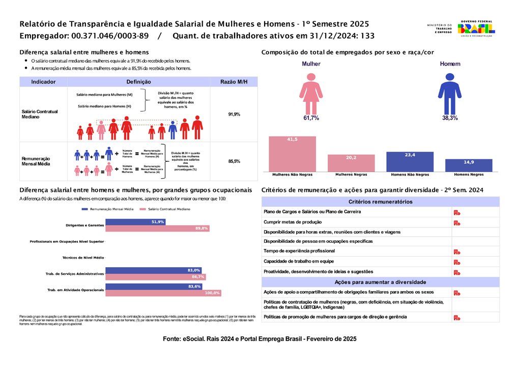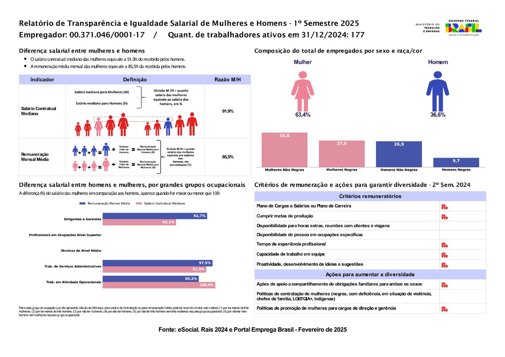 Relatório de Transparência e Igualdade Salarial de Mulheres e Homens - 2º Semestre 2024 - Matriz