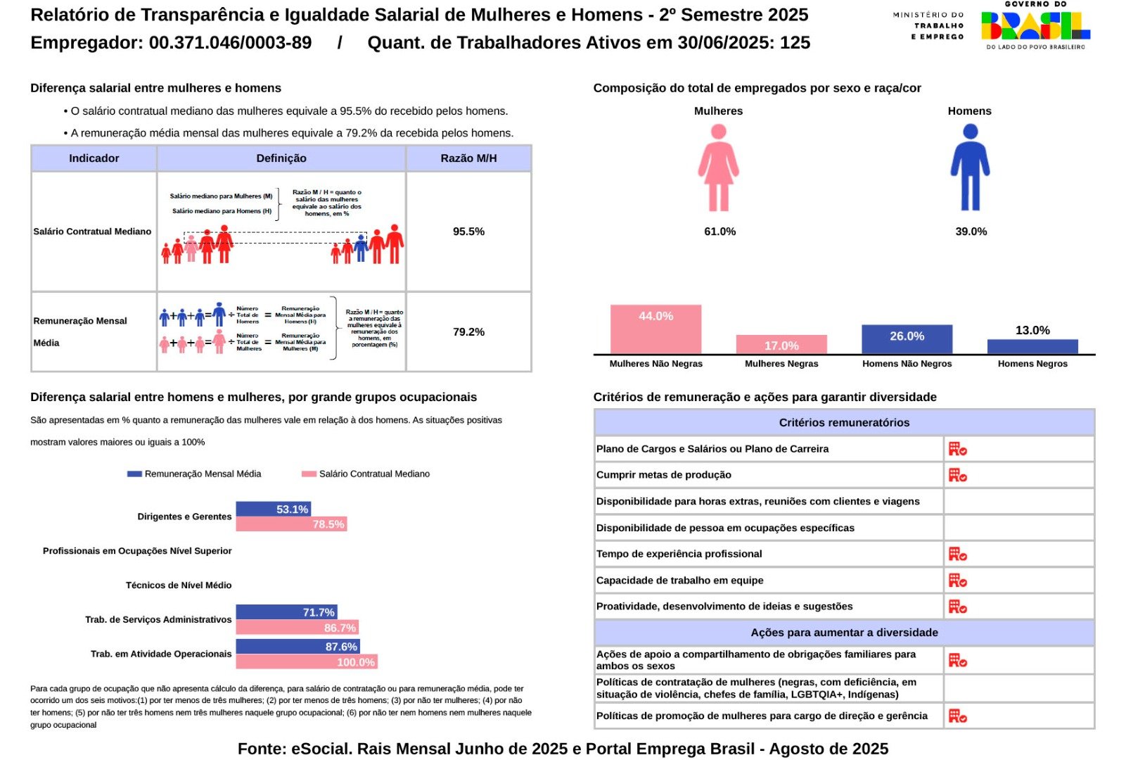 Relatório de Transparência e Igualdade Salarial de Mulheres e Homens - 2º Semestre 2025 - Matriz